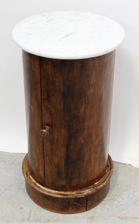 Lot 75 of 725: A 19th century walnut cylinder night stand with later marble top, height 72.5cm.