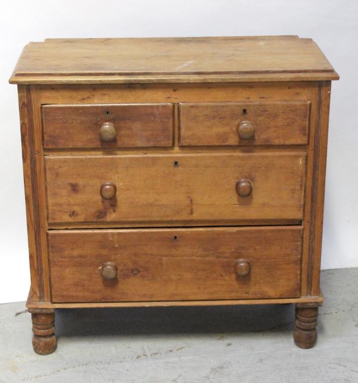 Lot 82 of 725: A Victorian pine chest of two-over-two drawers on turned feet, height 89cm.