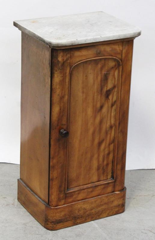 Lot 104 of 725: An Edwardian walnut pot cupboard, marble top to plinth base, width 40cm.