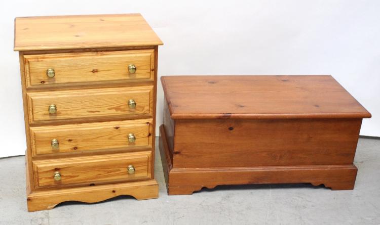 Lot 111 of 725: A contemporary pine blanket box, length 84cm and a pine four-drawer chest of drawers, 77 x 60cm (2).