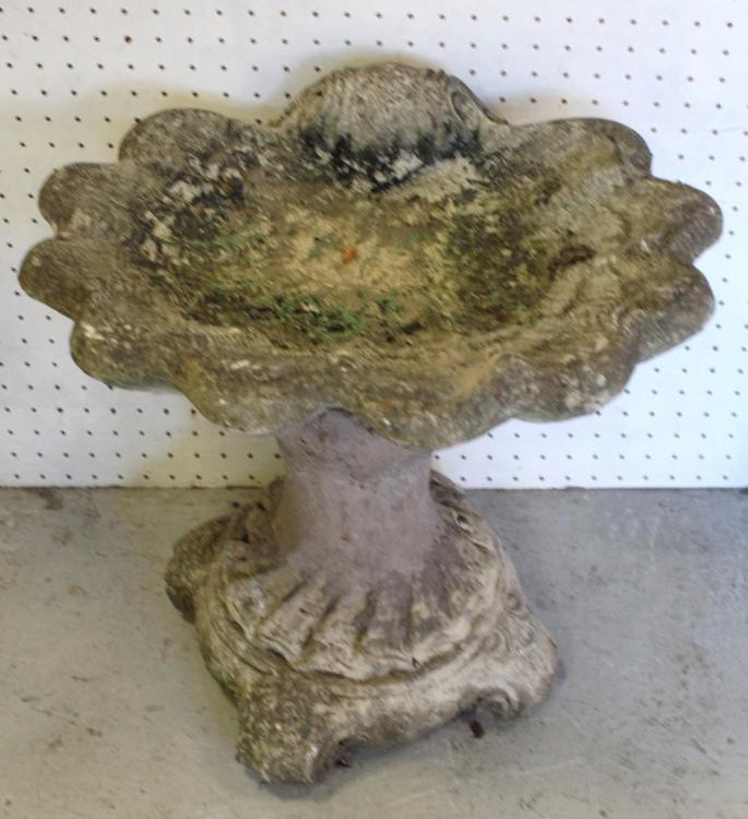 Lot 185 of 725: A composite garden architectural shell birdbath, diameter 49cm.