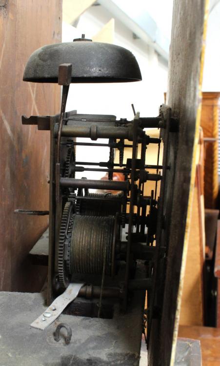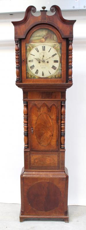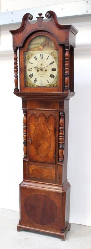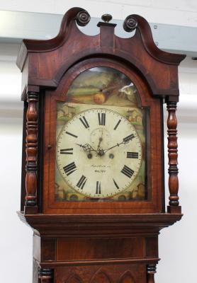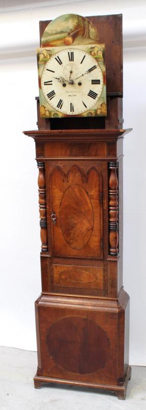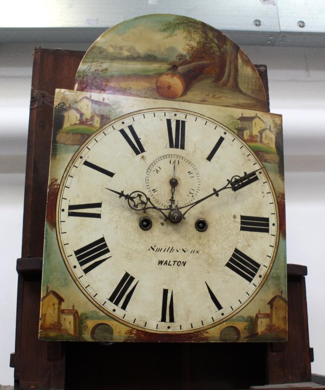 Lot 214 of 725: An 18th century arch dial oak and mahogany cased North Country longcase clock by Smith & Sons of Walton-on-Trent, the dial set with Roman numerals and subsidiary seconds dial, decorated to the spandrels and the arch with hand-painted Mediterranean villa scenes, height 231cm.