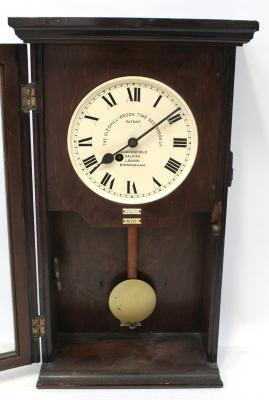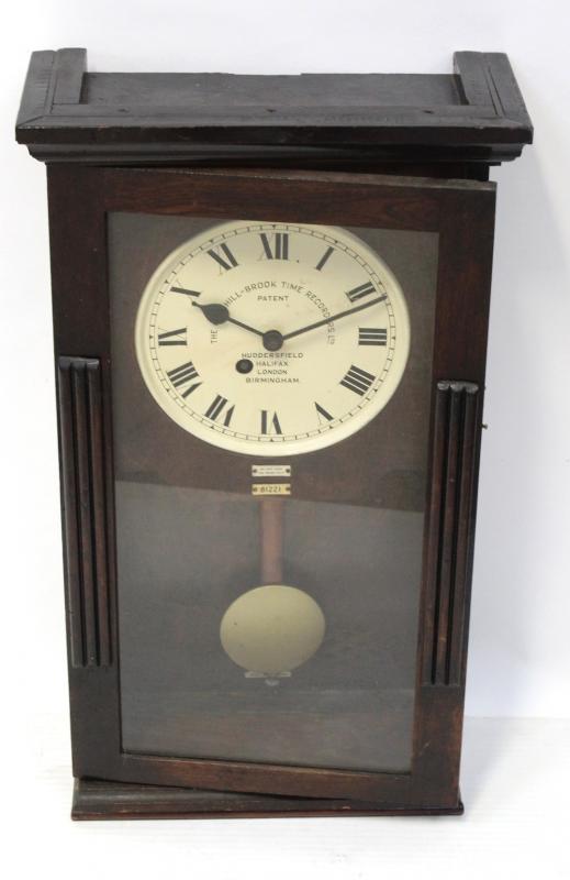 Lot 226 of 725: An oak-cased 'The Gledhill-Brook Time Recorders Ltd' clocking in clock, no'd.81221, the dial set with Roman numerals, with brass pendulum, height 76.5cm.