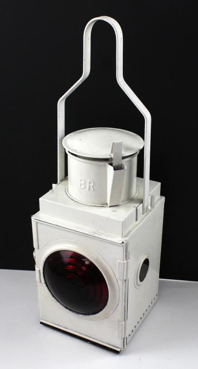 Lot 230 of 725: A vintage British Rail train tail light, height 51cm including handle.