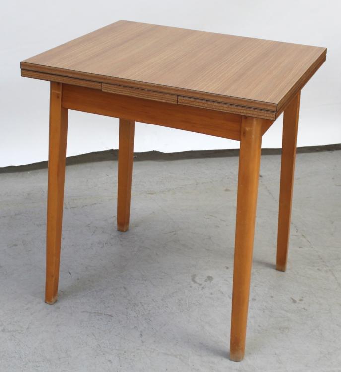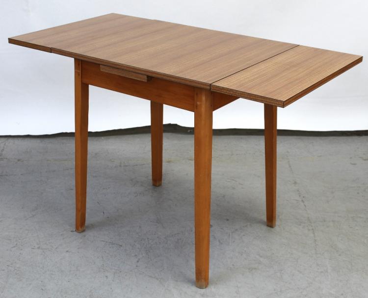 Lot 60 of 944: A 1950/60s melamine draw-leaf table on beech base, 79 x 60 x 70cm and four contemporary beech kitchen chairs (5).