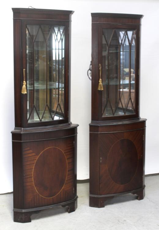 Lot 68 of 944: Two non-matching reproduction mahogany floor-standing corner units, glazed door above single cupboard door, height of each 180cm (2).