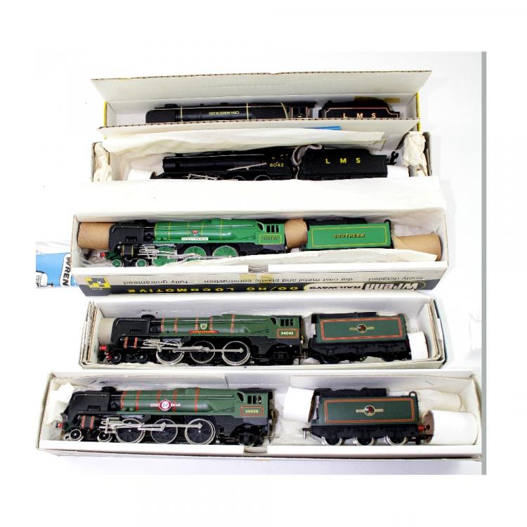 Lot 650 of 959: Five boxed Wrenn engines, 'W2238 4-6-2 Clanline B.R. Green', 'W2237 4-6-2 West Country Southern', 'W2236 Dorchester', 'W2225 2-8-0 Freight LMS' and 'W2227 City of Stoke CS L.M.S' (5).