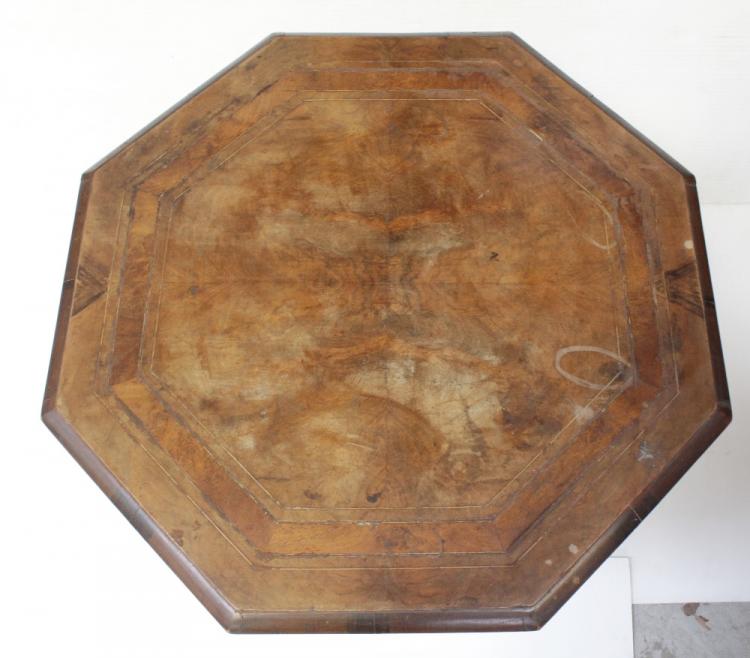 Lot 18 of 922: A Victorian walnut Aesthetics octagonal table on quadripartite support to castors, diameter 72cm.