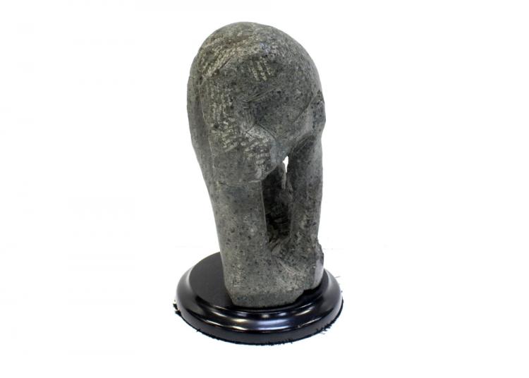 Lot 62 of 922: An early/mid 20th mahogany torchère with acanthus leaf carved decoration to the column, to circular stepped base, height 130cm and Unattributed; an abstract figural carving on a stepped circular base, height 26cm (2).
