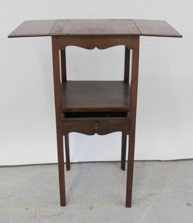 Lot 24 of 1176: A 19th century dropleaf night stand, the lower shelf with single drawer over a shaped frieze supported on square legs chamfered to the insides, height 79.5cm.