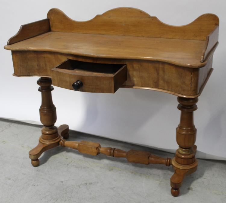 Lot 49 of 1176: A Victorian walnut twin pillar wash stand with shaped galleried back and single central frieze drawer, width 102cm.