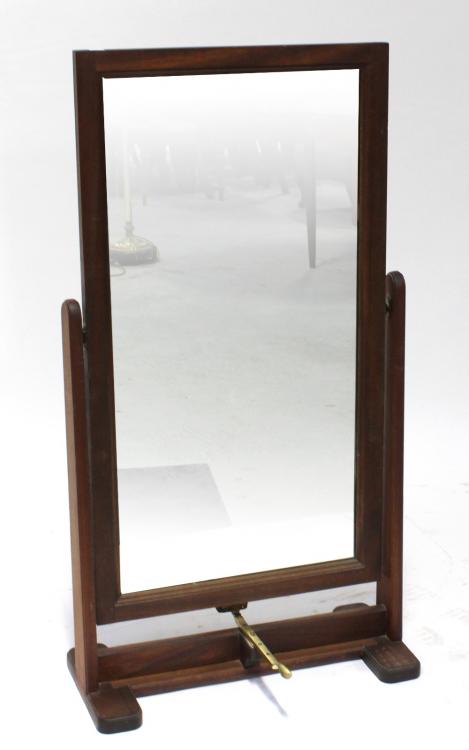 Lot 15 of 788: A 1970s mahogany low-standing rectangular cheval mirror on swing framed support, height 118cm.