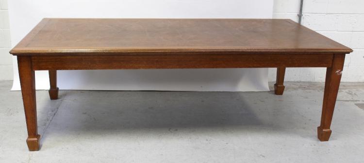 Lot 64 of 788: A large oak Arts and Crafts boardroom table with tooled brown leather skiver supported on square tapering legs to spade feet, 244 x 121cm.