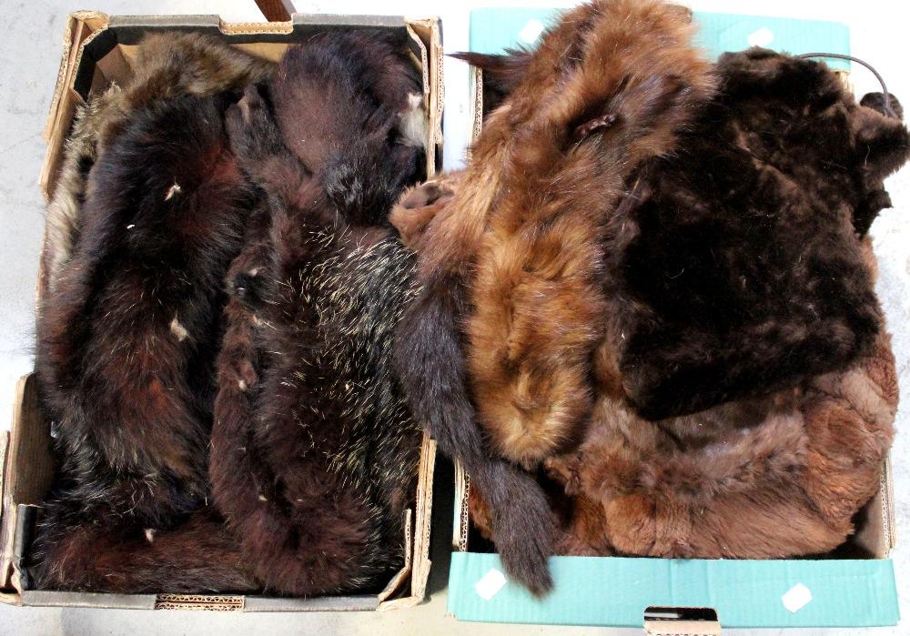 Lot 464 of 796: A quantity of mainly 1930s and 1940s furs to include full fox , evening wraps, capes and shrugs in a variety of furs, hat and fur muff etc (2).