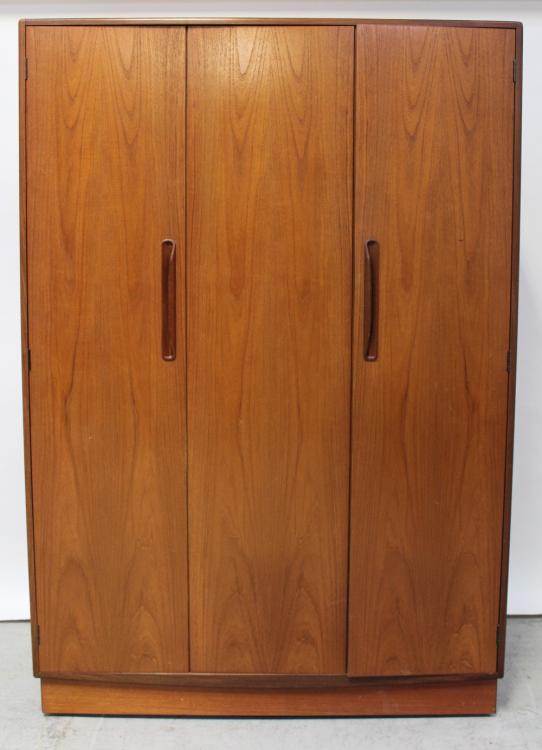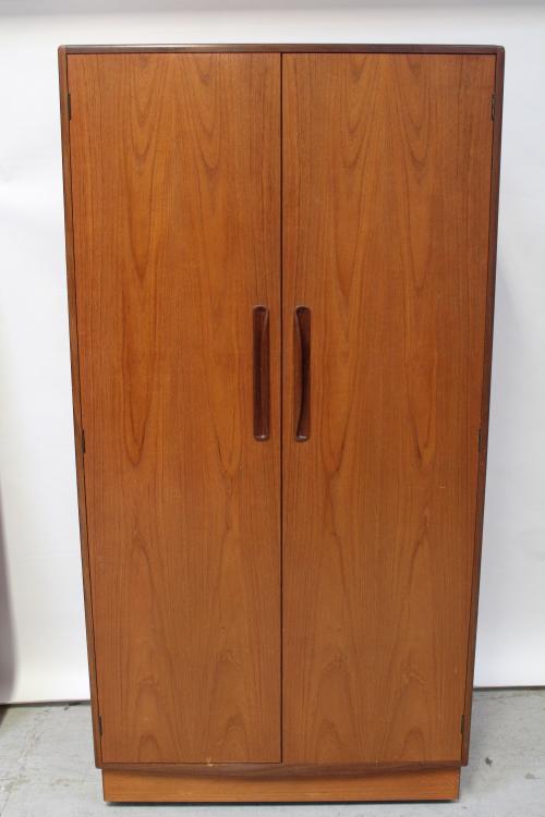 Lot 41 of 787: A G-Plan Fresco five-piece bedroom suite comprising triple-door wardrobe, twin-door wardrobe, mirrored back dressing table and stool and narrow chest of six drawers (5).