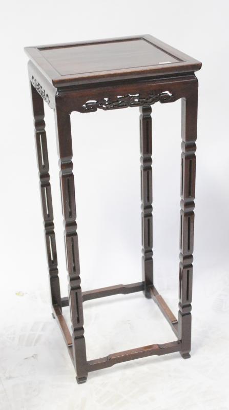 Lot 106 of 787: A Chinese carved hardwood jardinière stand with square top raised on carved block supports, height 74cm.