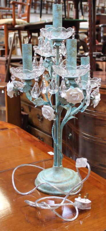 Lot 137 of 787: A contemporary table lamp in the form of a chandelier, height approx 62cm.