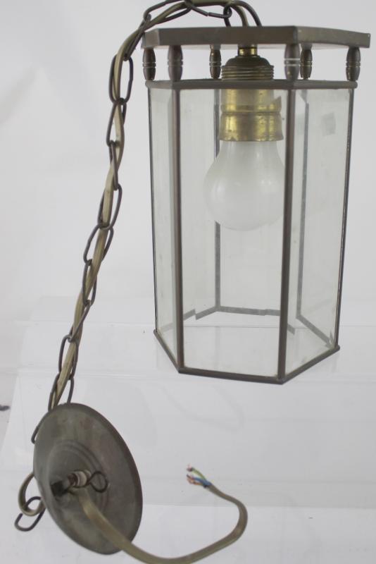 Lot 139 of 787: A brass lantern with bevelled glass shade, height 23cm.