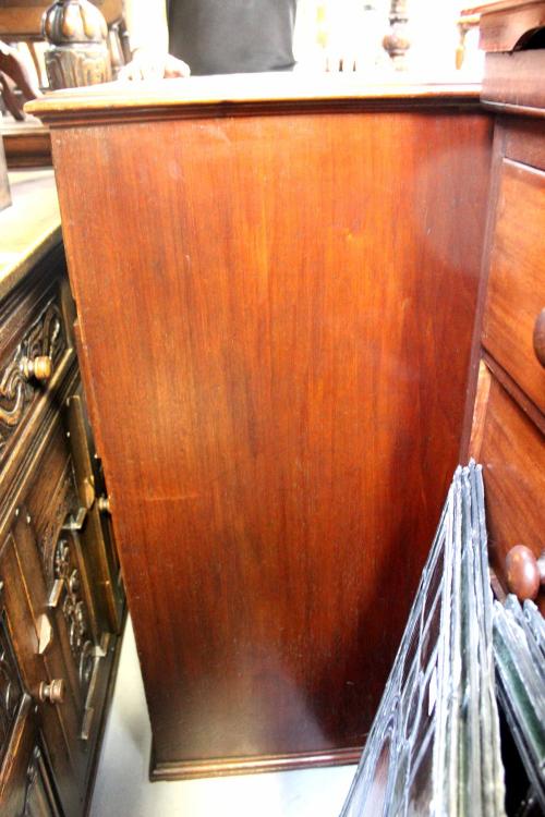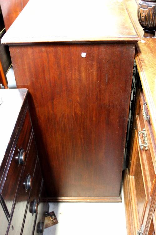 Lot 40 of 1057: A George III mahogany chest of two short and three long graduated drawers, with brass swing handles, on castor feet, height 108cm, width 105cm.