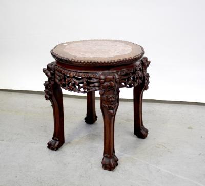 Lot 78 of 1057: An Oriental jardinière stand with inset rouge marble panel and a mahogany tripod occasional table (2).