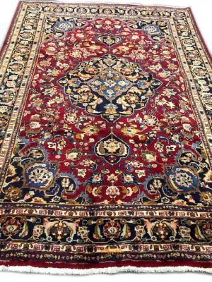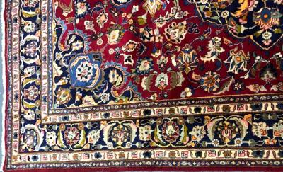 Lot 97 of 803: A wool hand knotted Persian carpet from the city of Mashad, 275 x 200cm.