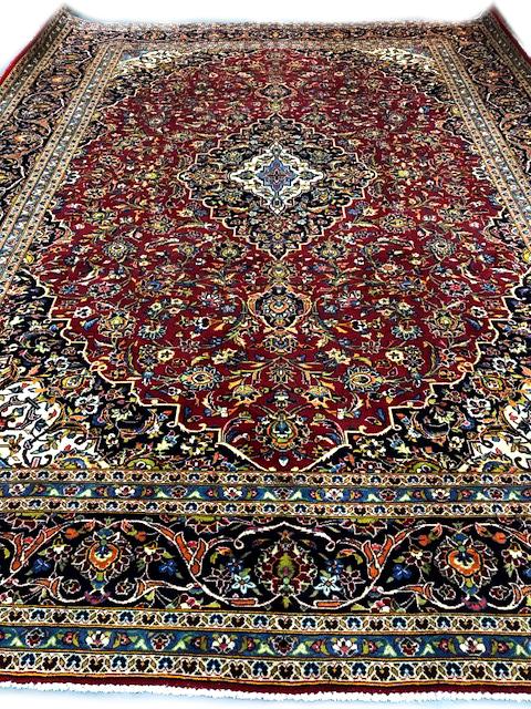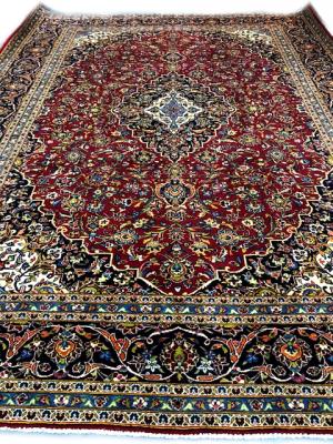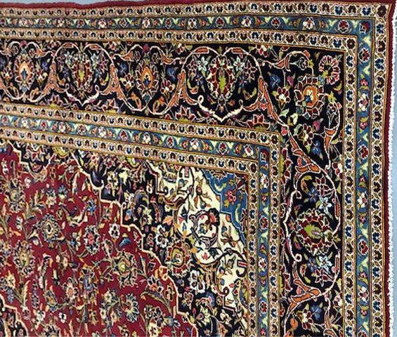 Lot 98 of 803: A wool hand knotted Persian carpet from the city of Kashan, classical floral medallion design, 400 x 300cm.