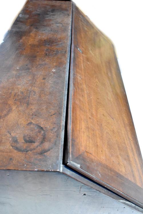 Lot 9 of 491: A George III mahogany bureau, the fall front revealing a fitted interior above two short and three long graduated drawers, on ogee bracket feet, 106 x 109 x 58cm.