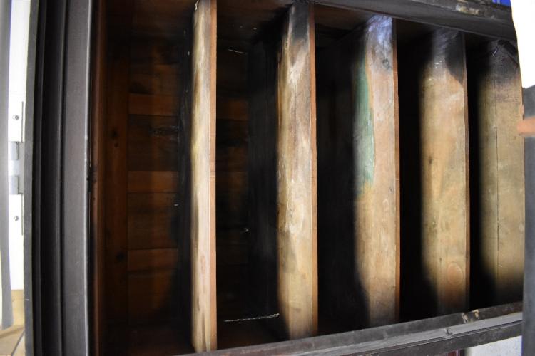 Lot 32 of 491: A Victorian painted pine two-door cupboard on plinth base with bracket feet, 187.5 x 135.5 x 75.5cm.