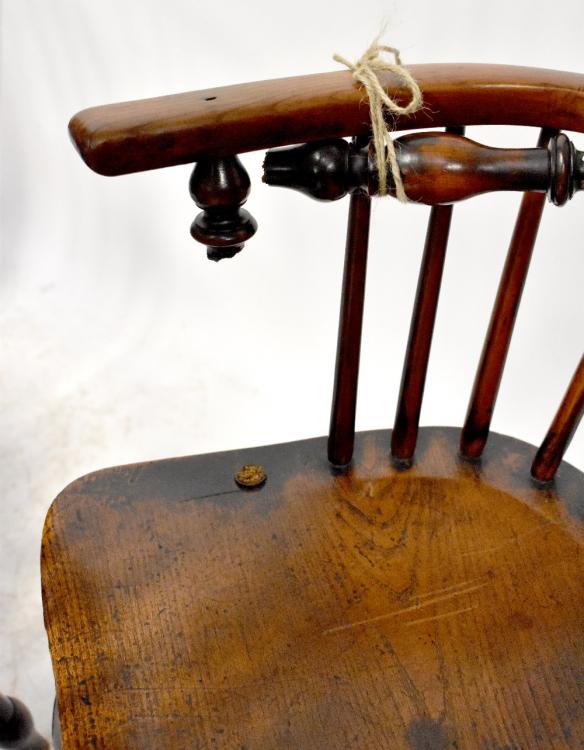 Lot 33 of 966: A set of four 18th century yew Windsor chairs with pierced splat backs flanked by simple spindle sides, united by swept arms above shaped elm seats, on turned tapering legs united by crinoline stretchers, height 92cm.