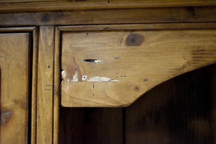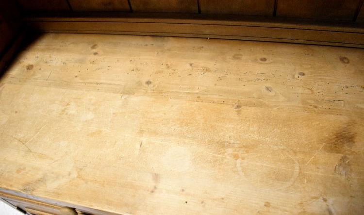 Lot 68 of 966: A reproduction pine dresser, the upper section with open central section with arched pediment above three spice drawers and flanked by pair of glazed doors above three drawers and three panelled doors to plinth base, height 200cm, length 184cm, depth 49cm.