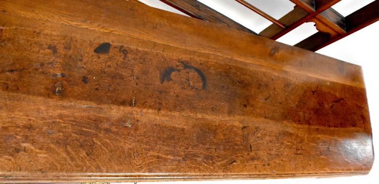 Lot 58 of 898: An 18th century dresser, the base comprising an arrangement of seven drawers around a central fielded and panelled cupboard, all with brass swan neck drop handles and escutcheons, with an associated oak open plate rack with an arrangement of tiers, all supported on a plinth base, 214 x 187 x 58cm.