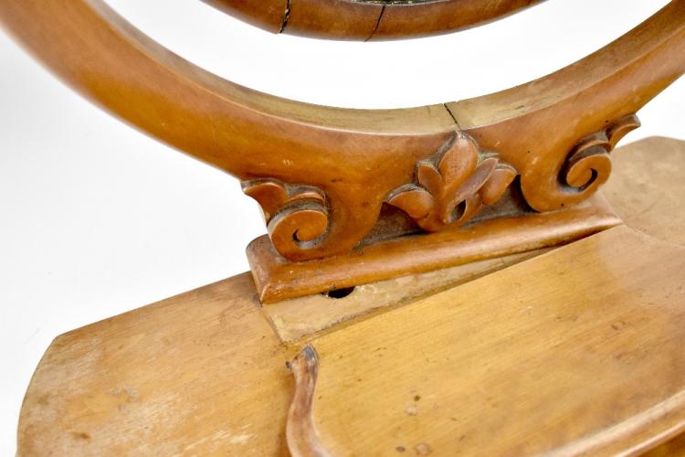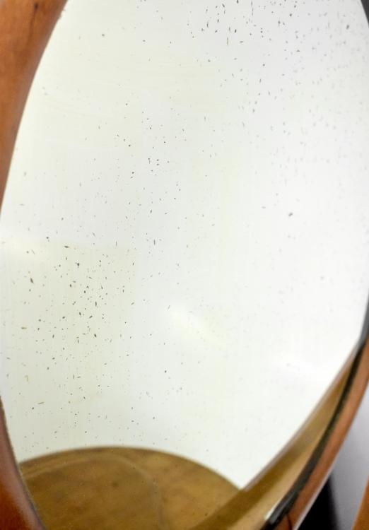 Lot 73 of 898: A late 19th/early 20th century freestanding oval swing dressing table mirror, with central lift-up lid for jewellery, on carved supports, height 69cm.