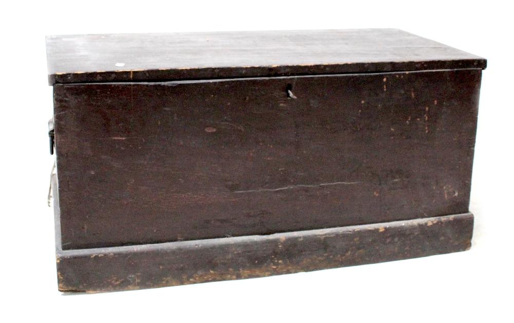 Lot 105 of 898: A 19th century stained pine sailor's trunk with black cast carrying handles to either side, length 102cm.