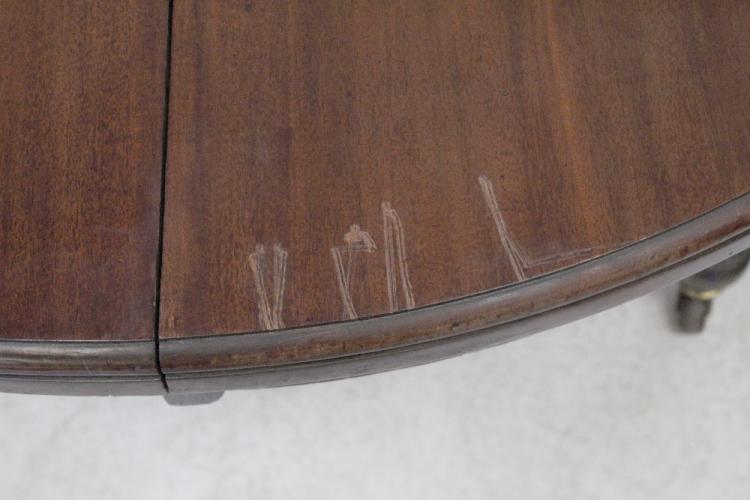 Lot 53A of 837: An early 20th century mahogany wind out table, with two additional leaves, raised on four fluted tapered supports to castors, with winding handle, closed diameter 120cm, width of additional leaves, 31cm and 26cm.