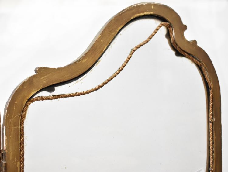 Lot 12 of 1291: A 19th century Rococo-style three-panel screen, each section with a glazed top above a gilt woven fabric upholstered panel, height 184cm, width of each panel 45cm, overall width 135cm.