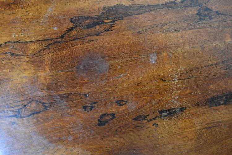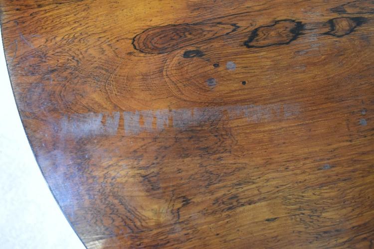 Lot 22 of 1291: A Regency rosewood circular tilt-top breakfast table on a turned and tapering column with lobed motif on a circular base, with four lion paw feet to castors, 71 x 120cm.