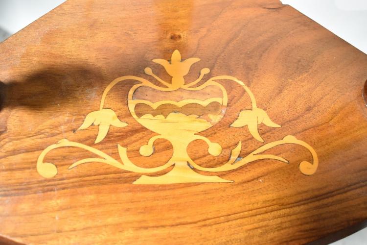 Lot 6 of 1098: A Victorian inlaid walnut whatnot with four graduated tiers and wrythen twist and bobbin turned supports, 135 x 56 x 32cm.
