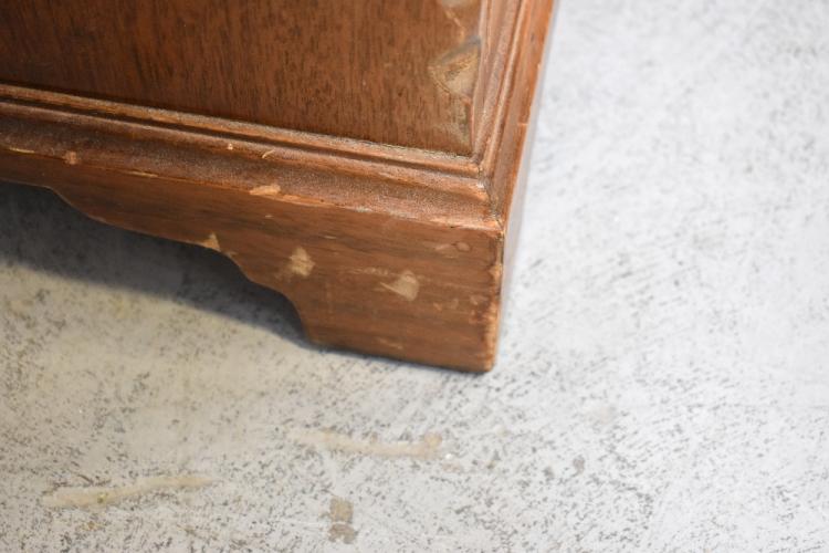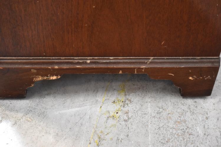 Lot 31 of 1098: An Edwardian-style reproduction inlaid and cross-banded walnut bureau, the fall-front enclosing a fitted interior and a gilt tooled green leather writing surface above four long drawers and raised on bracket feet, 100 x 74 x 48cm.