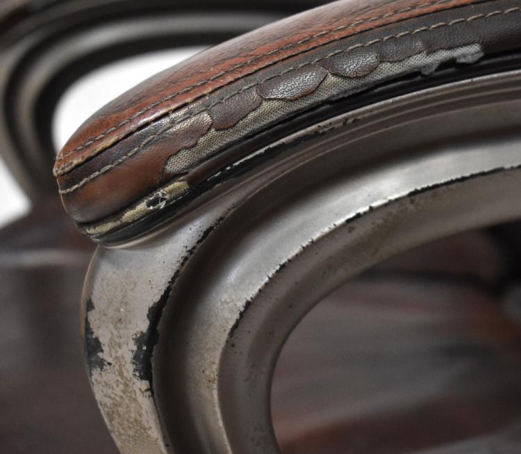 Lot 46 of 875: A contemporary brown leather adjustable office chair on outswept quadripartite supports and castors.