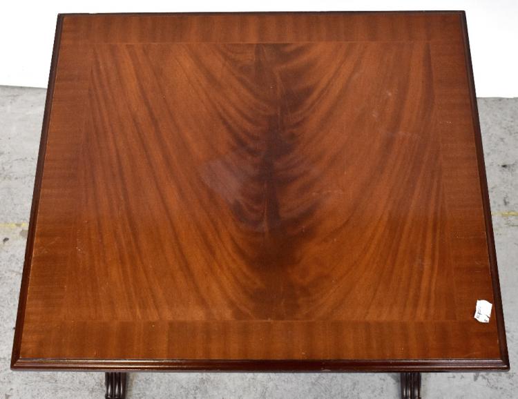 Lot 69 of 875: STAGG; a mahogany square side table with shaped side supports, to outswept feet with metal paw supports, 52 x 52 x 52cm.