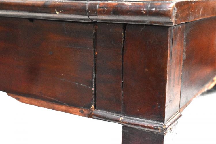 Lot 7 of 1053: An early 19th century mahogany hall/side table to block supports, length 90cm.