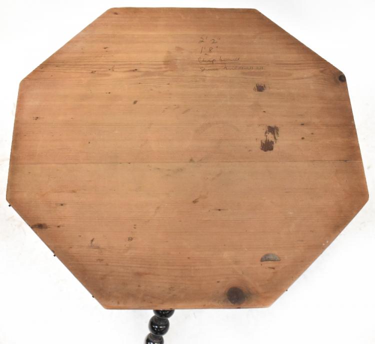 Lot 55 of 1053: An early 20th century oak drop-leaf gateleg table with wrythen supports and stretchers, when extended 89cm and a 19th century octagonal side table on bobbin turned and tripartite support (possibly later table top) (2).