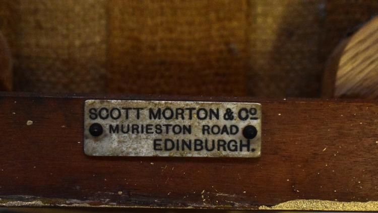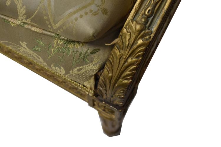 Lot 20 of 998: An Edwardian gilt framed five-piece French style salon suite comprising two-seat sofa and four side chairs, all upholstered in an Aubusson silk style fabric, bearing retailer's label to the lower frieze of the chairs, 'Scott Morton & Co, Murieston Road, Edinburgh' (5).