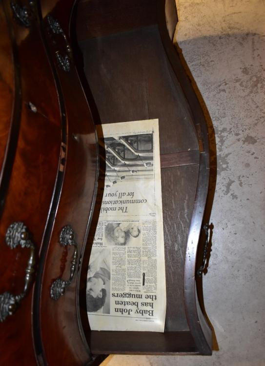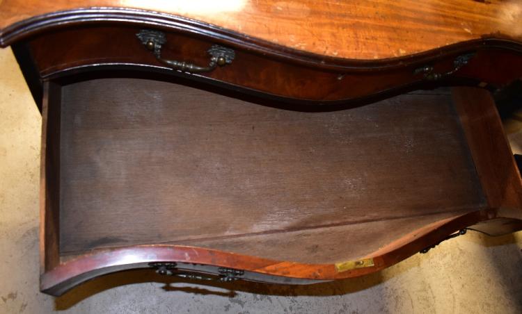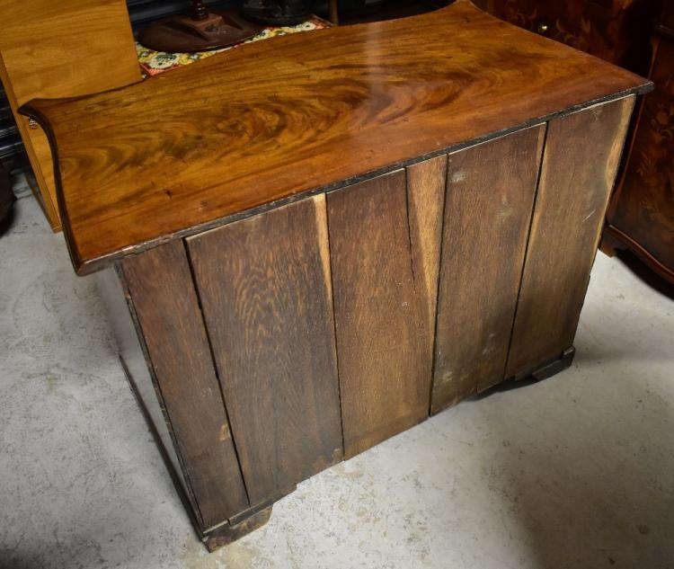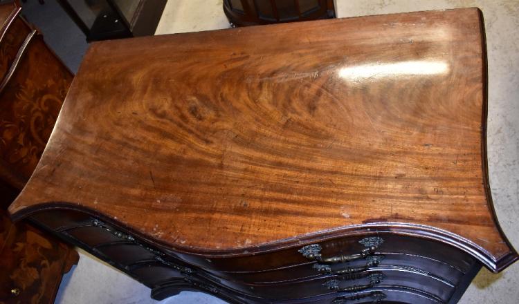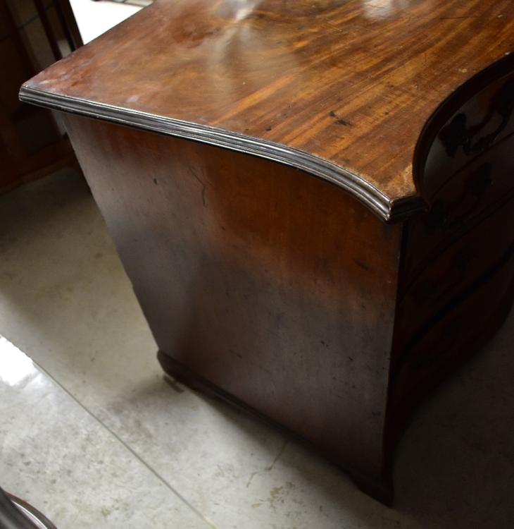 Lot 2 of 854: A George III mahogany serpentine front chest of four drawers, raised on bracket feet, 76 x 103 x 59cm (af).