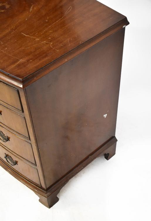 Lot 57 of 1095: An early 20th century mahogany bow-fronted chest of four graduated drawers, raised on bracket feet, 83 x 79 x 54cm (af).