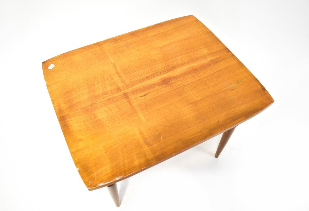 Lot 85 of 1095: A retro teak two-tier coffee table with adjustable undertier, raised on turned tapering supports, 53 x 70 x 56cm.