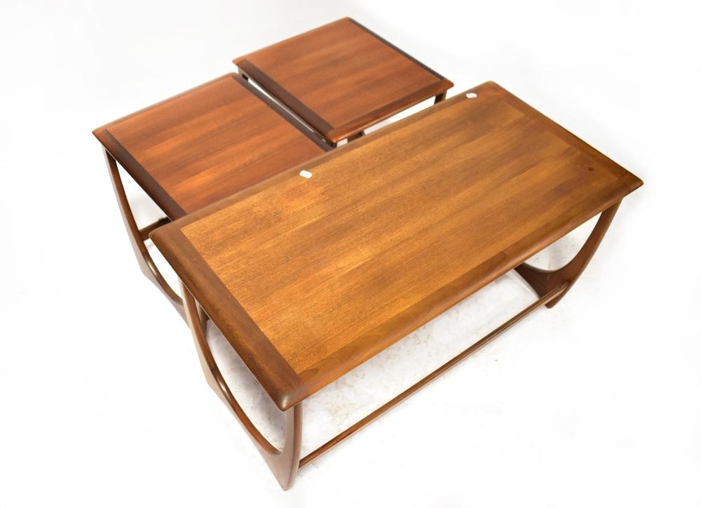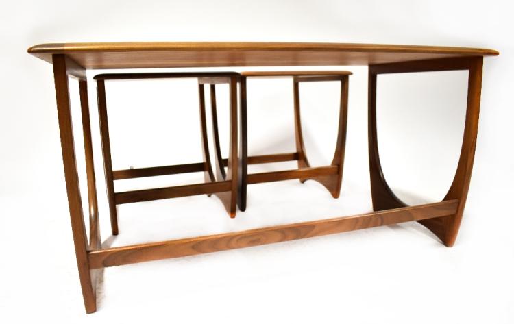 Lot 90 of 1095: A G-plan style nest of three teak tables, with the outer table housing two smaller tables side by side, 51 x 99 x 50cm.