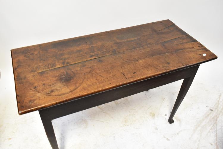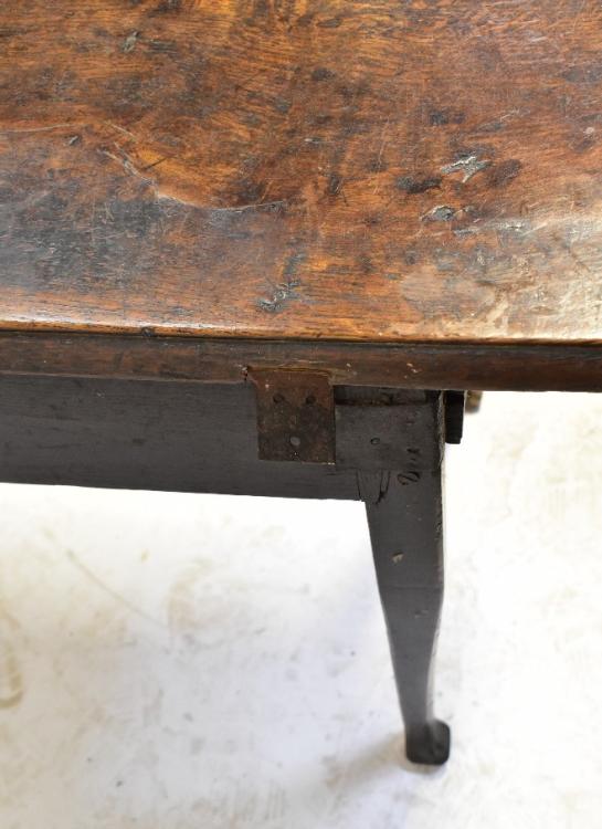 Lot 6 of 1061: A 19th century and later side table constructed of an oak gateleg table frame with slender cabriole legs to pad feet, with associated coffer lid for a top, 73 x 119 x 54cm (af).