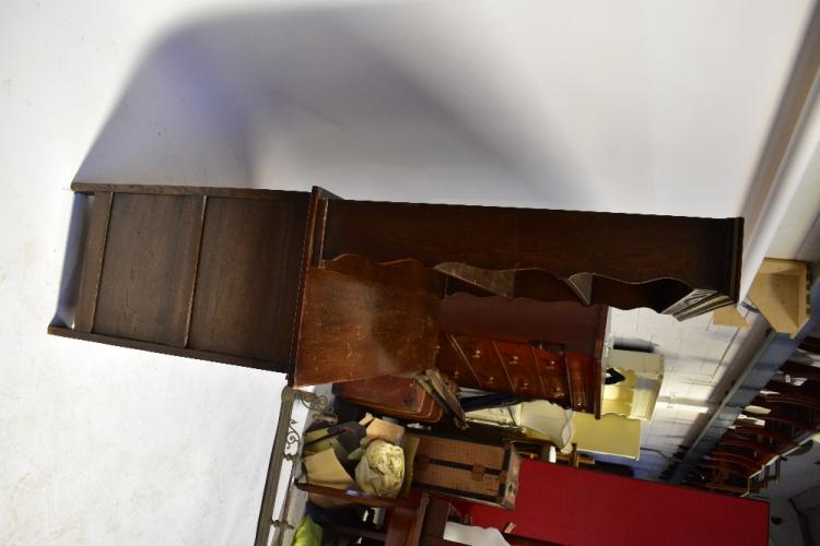 Lot 43 of 1493: A modern reproduction oak dresser, on two-drawer, two-cabinet dresser base, with carved floral friezes and panels to the front, external hinges and square supports, 183 x 124 x 49cm.