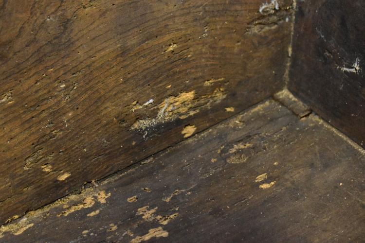 Lot 70 of 1493: A 19th century oak dough bin with lift-up rectangular plank top, on a stand with square tapering legs, 83 x 81 x 50cm.